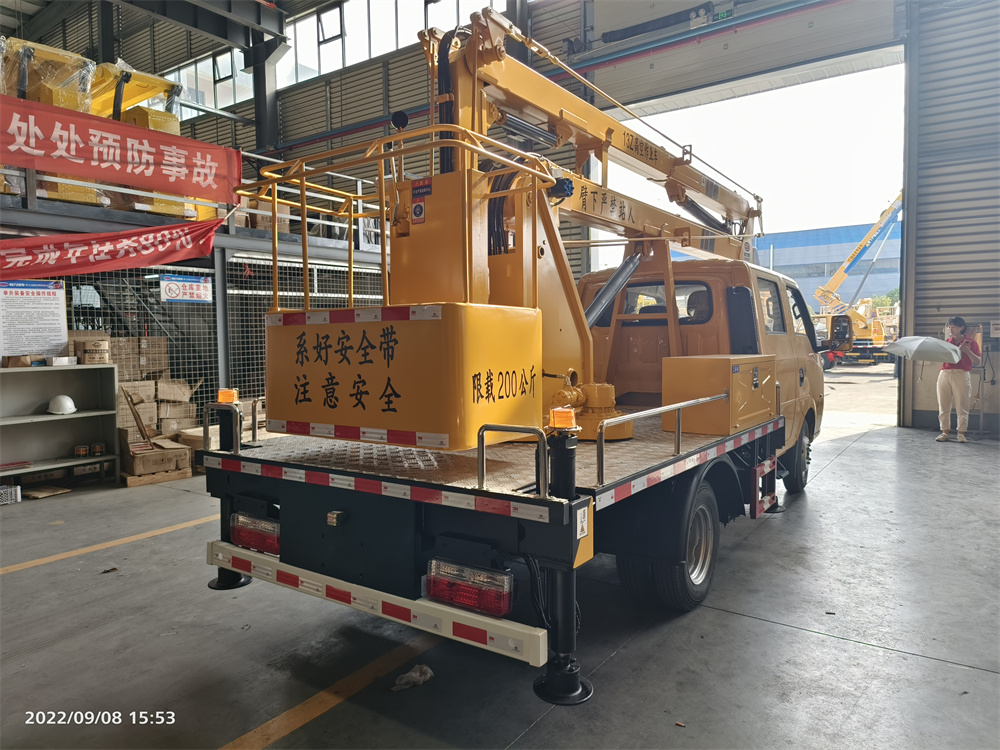 專用性能: 液壓 360 度全回轉,三節折疊臂,單液壓舉升缸,帶雙向平衡閥,帶電控 操作舉升臂, 四支液壓油缸可調式支腿帶雙向液壓鎖(支腿操作為手動操作, 可單獨控制),上下二套操作臺,帶 1 噸吊鉤,最大作業高度 13 米,最大作業 半徑 5.6 米,最大起吊重量 1 噸。 設備結構緊湊,堅固耐用,操作方便可靠。獨特的全回轉三節臂液壓 操控系統設計使工作人員操作更平穩,能更安全的將工作人員送到作業位 置,進行維修,安裝,清洗,攝影,造船, 化工,電力搶修,剪枝,更換路燈及其 他工程高空作業搶修!
