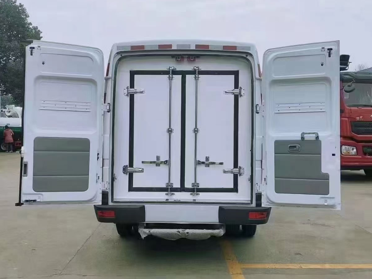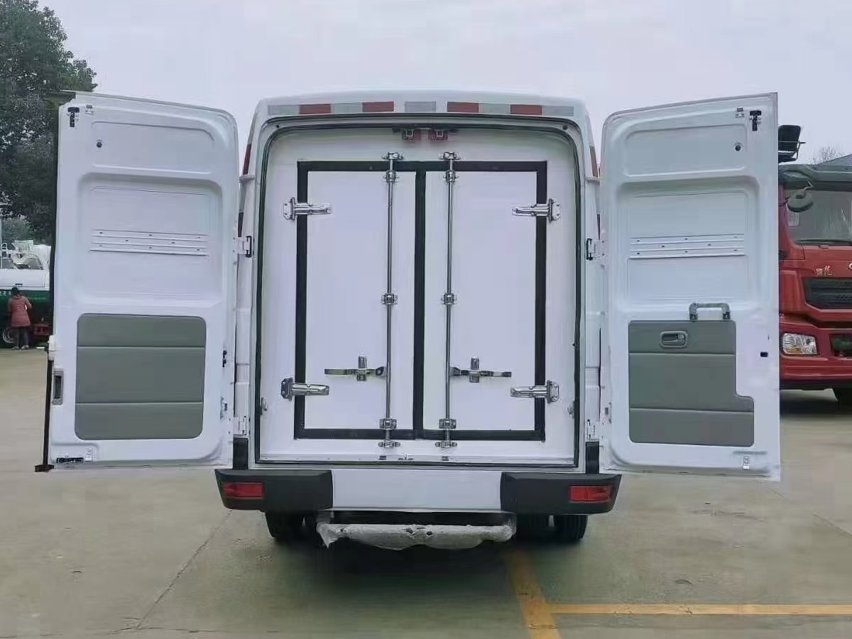 (2)廂板材質:內外壁板選用國內優質玻璃鋼(不吸光、隔熱性好、硬度強、抗氧化);中間保溫層為XPS擠塑聚笨板;廂體厚度8CM。地板采用鋁花紋板,門邊條采用迷宮式橡膠密封條。